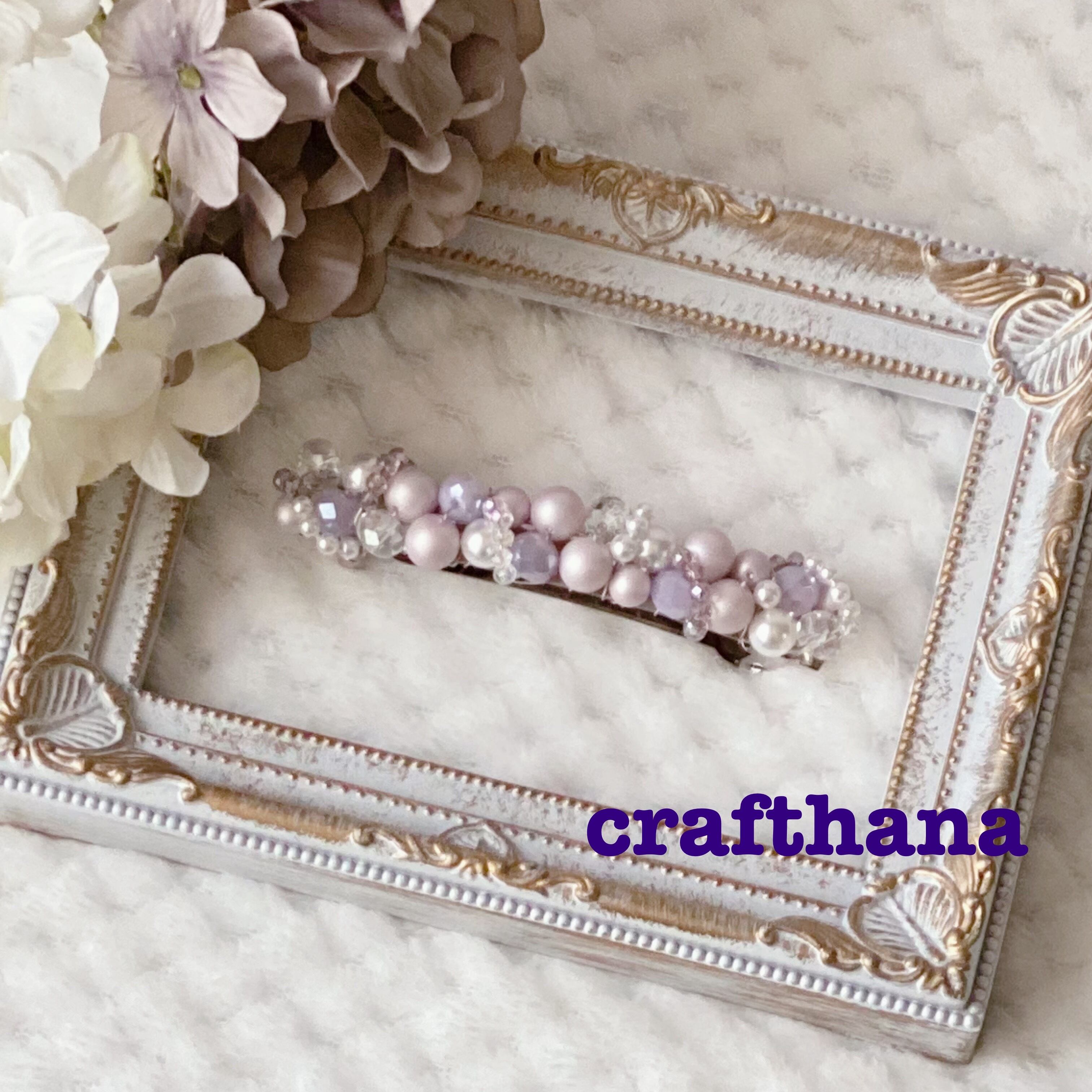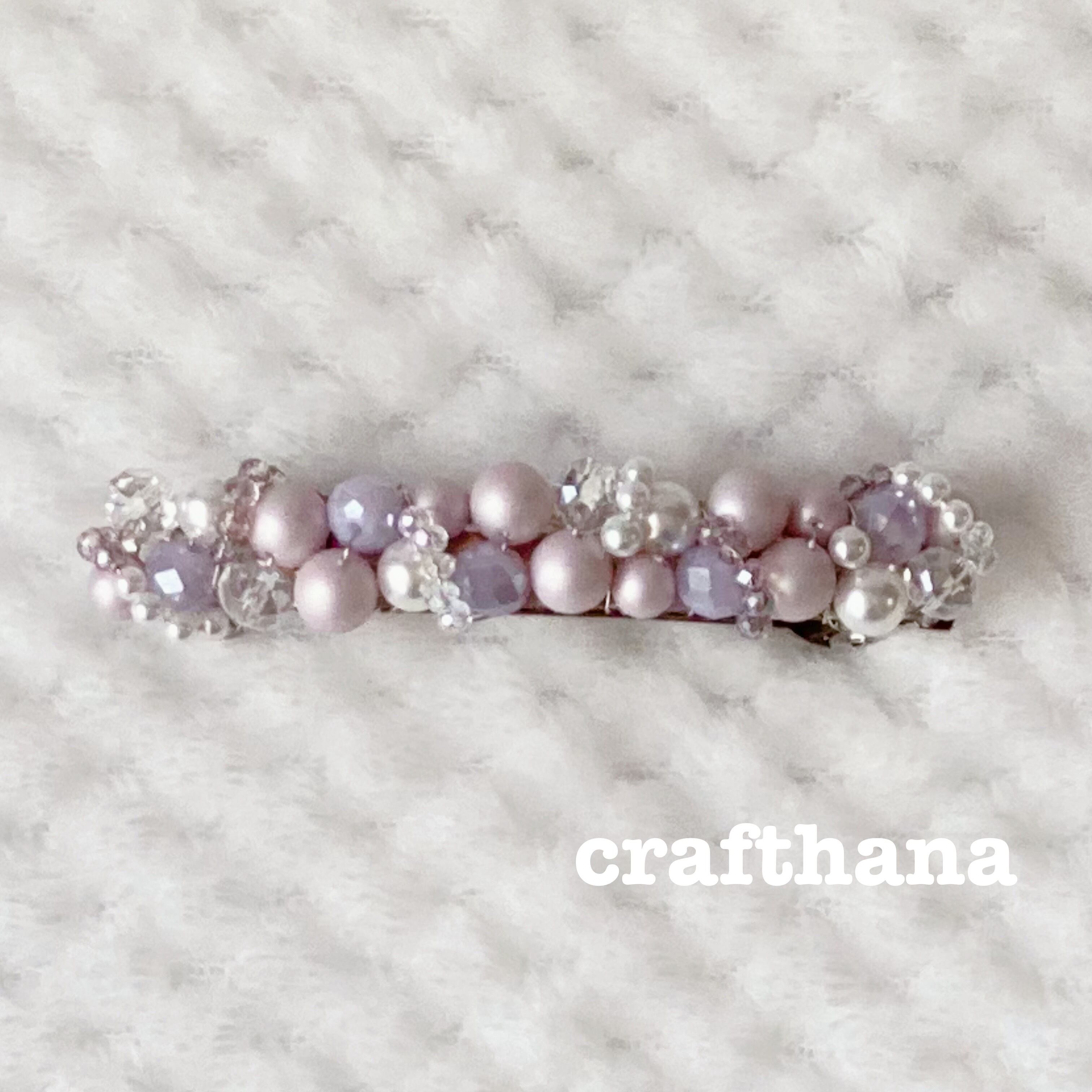 ラベンダーカラーのパールやビーズを使用し、お出かけにも、オフィスにも合うバレッタをつくりました。