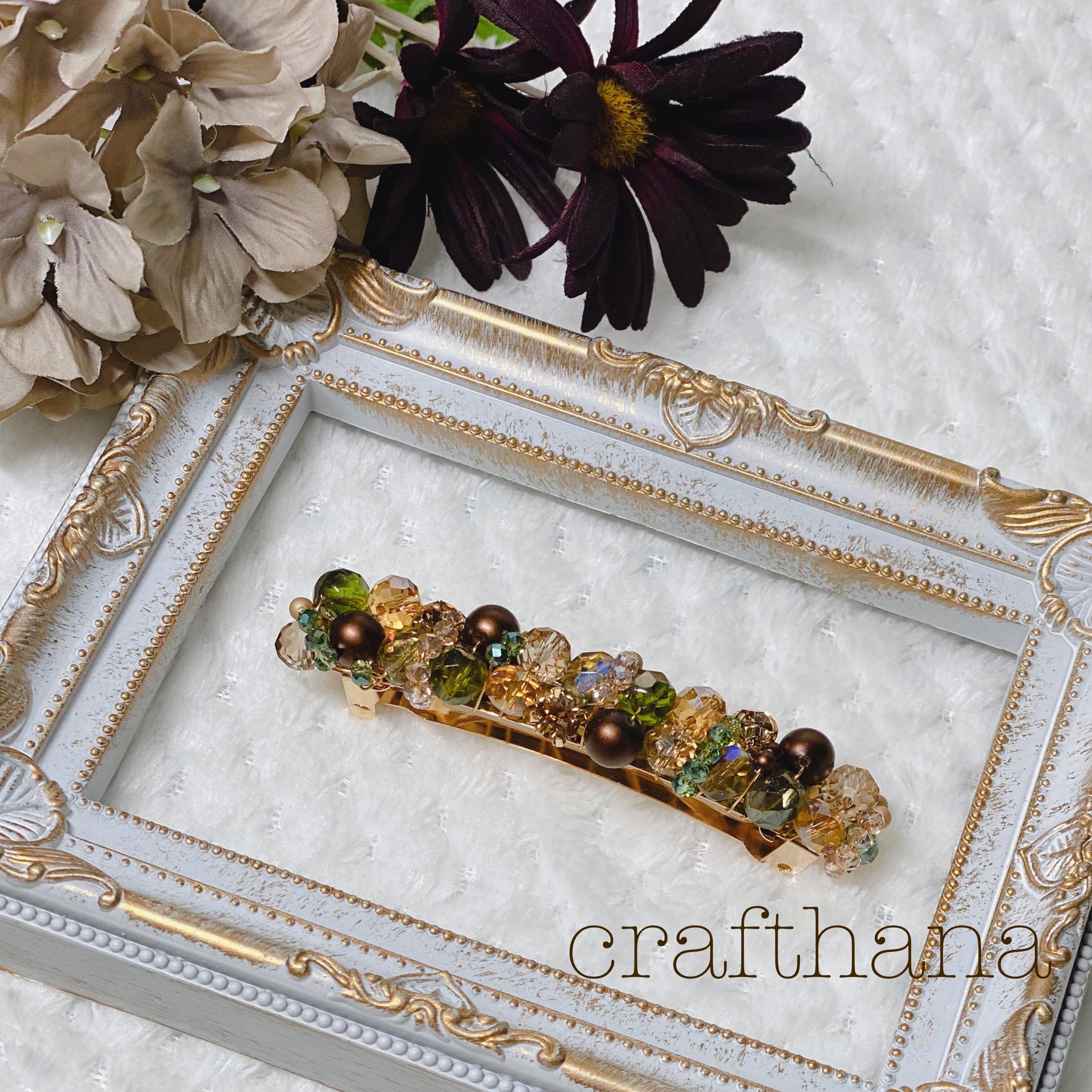 深まる秋の木々のような色合いが落ち着いた雰囲気を醸し出しているバレッタです。