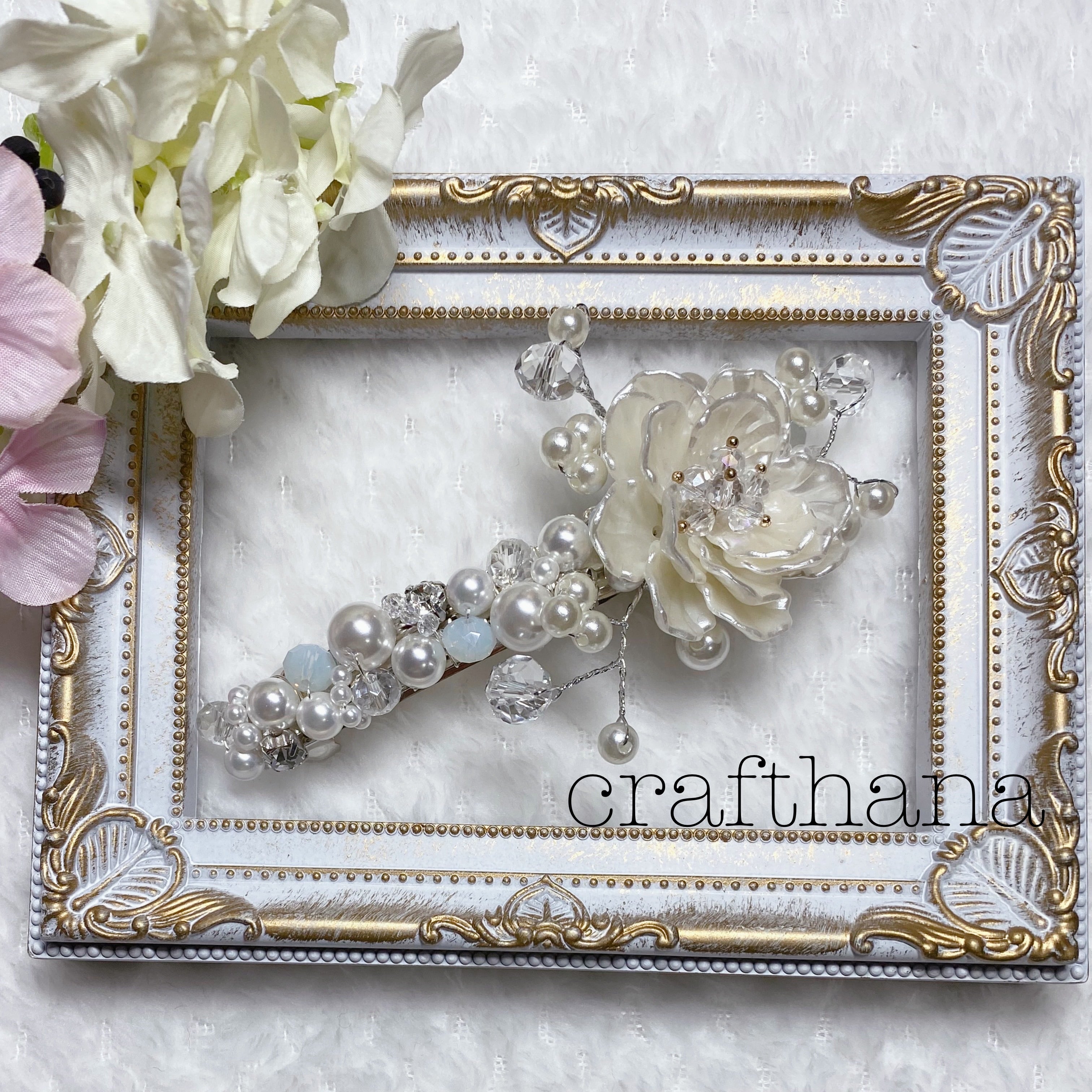 白い大きなお花のバレッタ 1点物